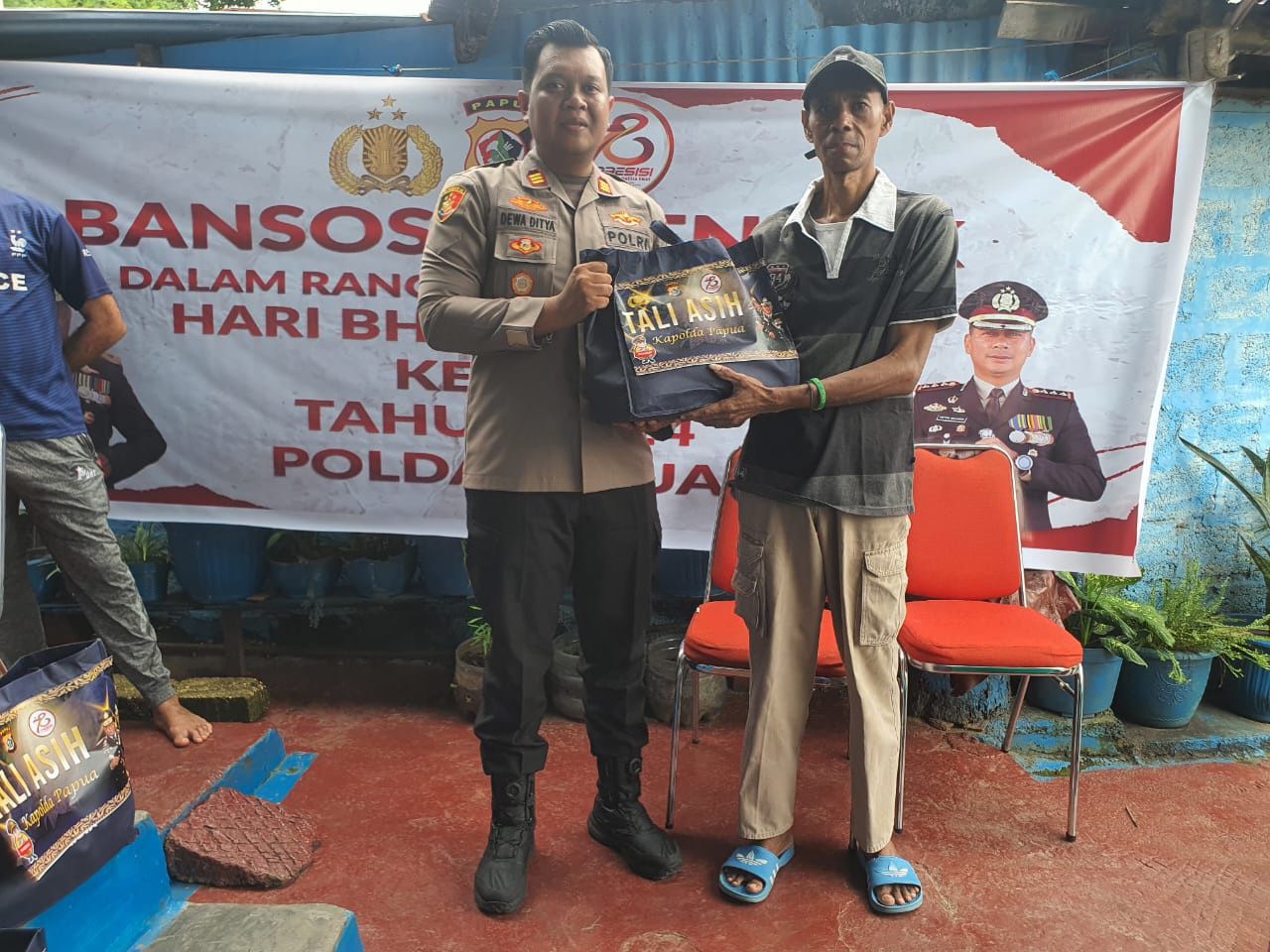 Kapolresta Jayapura Kota Kombes Pol Dr. Victor D. Mackbon, S.H., S.IK., M.H., M.Si melalui Kapolsek Jayapura Selatan AKP I Dewa Gede Aditya Krishnanda, S.I.K mengungkapkan bahwa bantuan yang diberikan berupa paket sembako untuk warga yang membutuhkan.